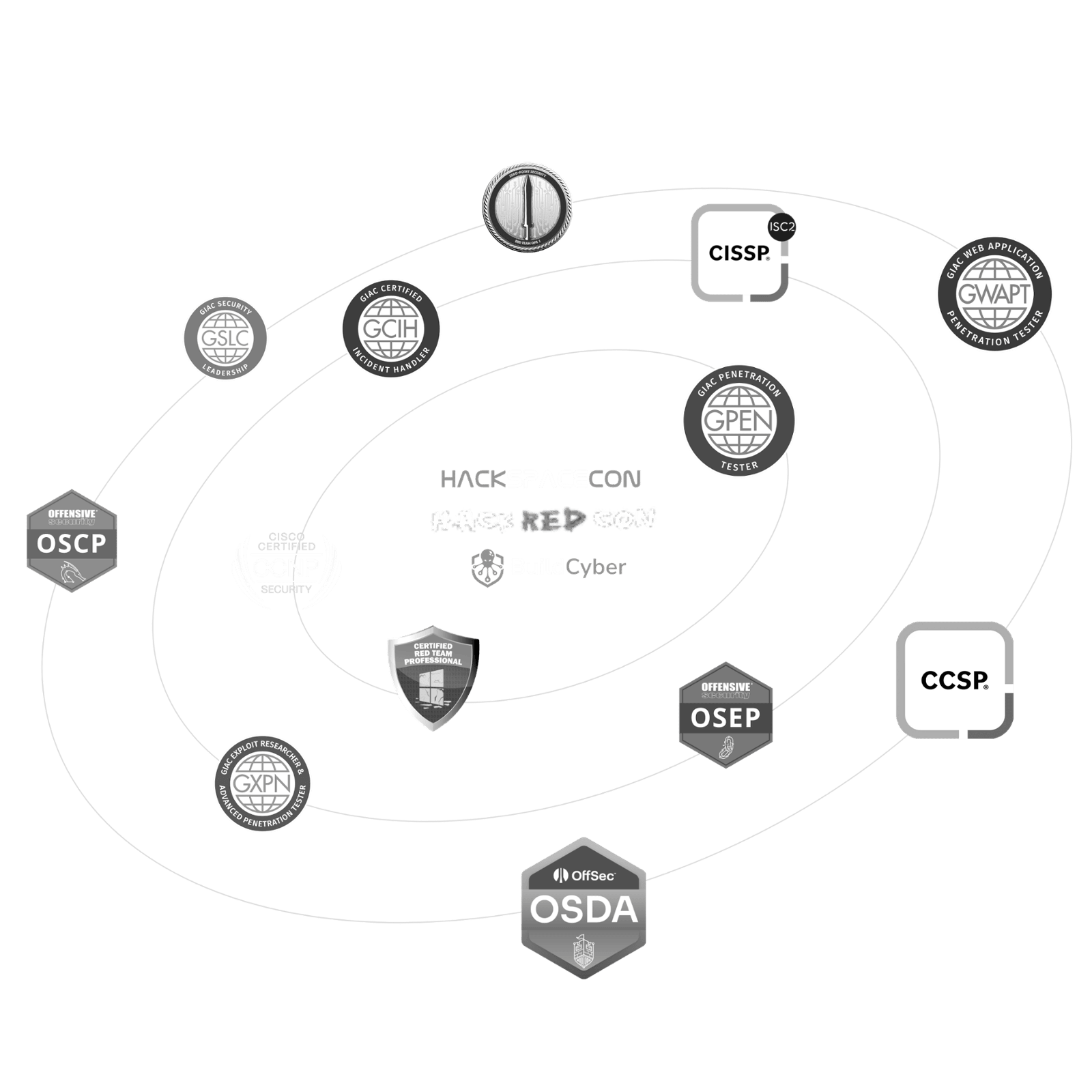 Top credentials, OSEP, OSCP, OSWP, OSDA, CISSP, GXPN, GPEN, GWAPT, GMOB, CRTE, CRTO, GCIH and more.